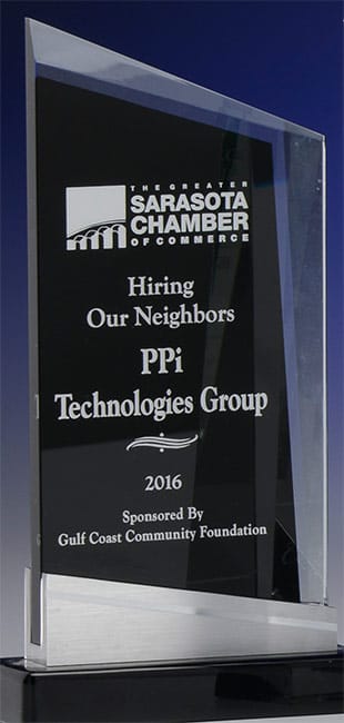 The Greater Sarasota Chamber of Commerce recently honored 9 local businesses in 3 categories: Hiring Our Neighbors, Investing in the Future, and Attaining Milestone Anniversaries of Service. Congratulations to PPi Technologies Group of Companies in the “Hiring Our Neighbors” category.