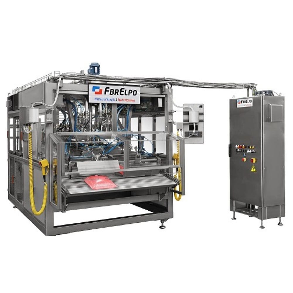 Completely automatic MUSTANG aseptic filler, built in stainless steel with double filling head with production capacity up to 1.200 bags/h.