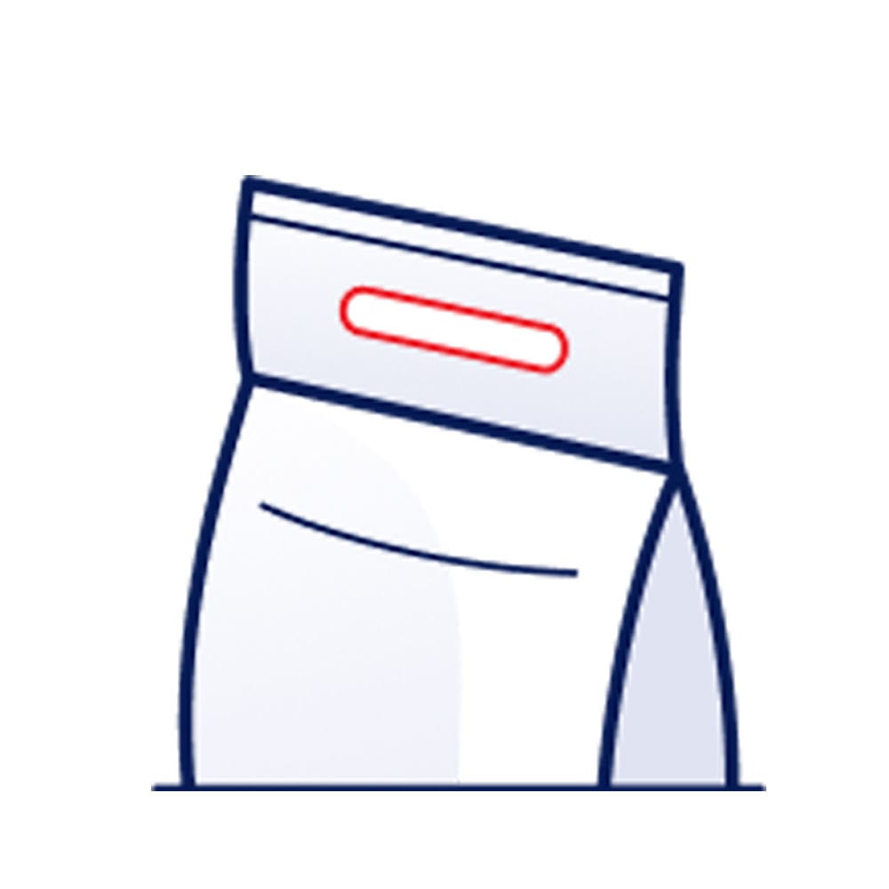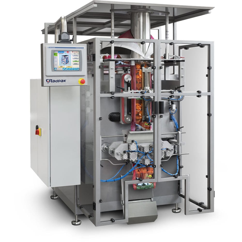 The operation of the vertical packaging machine is in fully automatic and involves forming a bag from a flat roll of net and two bands, which is welded and closed and cut off after the product is administered.