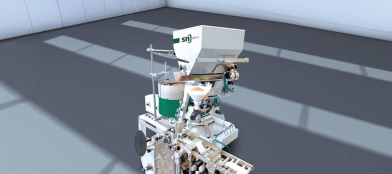 The RTV 1 dosing unit is ideal for portioning poorly flowing piece goods and special seeds for flowers such as marigolds, zinia, etc. The dosing unit consists of a product sorting unit with a feed unit up to approx. 50 liters, a round pot vibrator and a filling tank with a clocked shut-off valve.