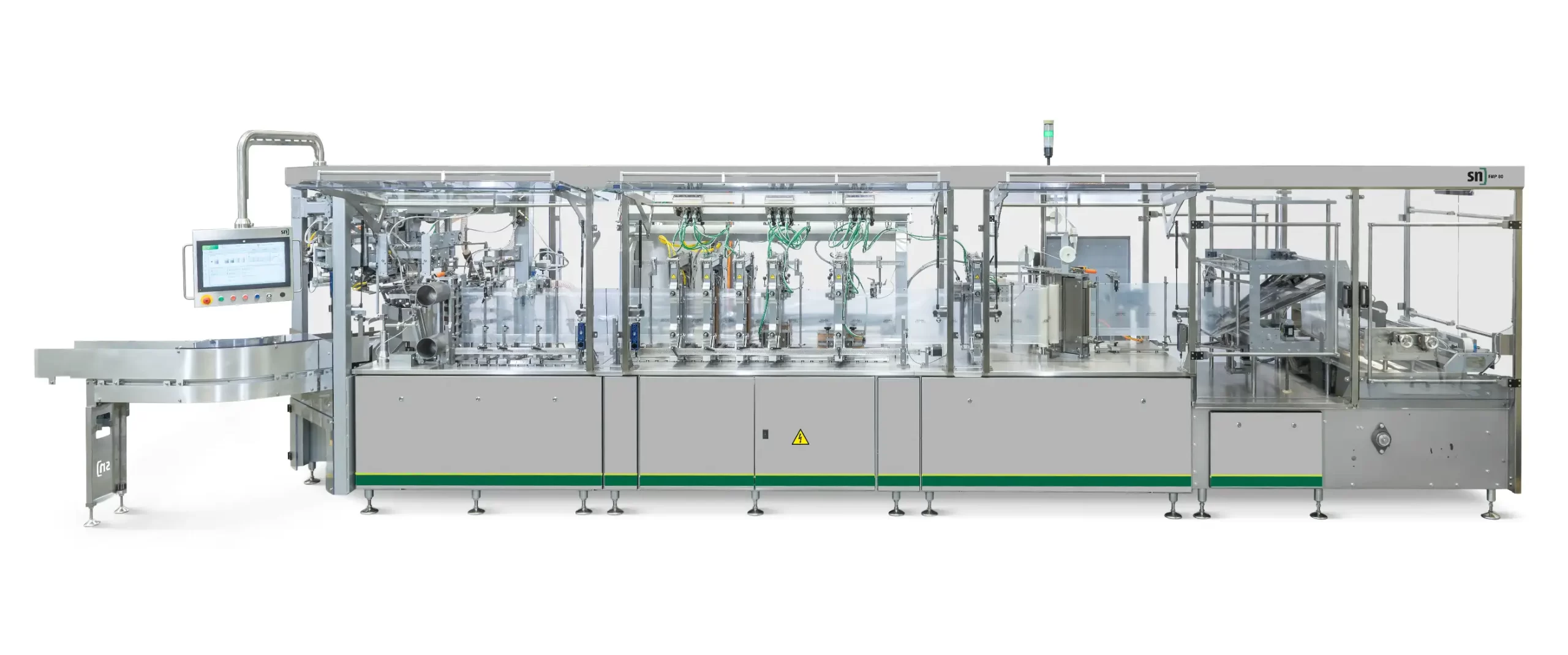 Our FMP 80 horizontal pouch packaging machine is a flexible and customizable Professional Series machine with eight rotary stations for producing, filling, and sealing flat or stand-up pouches from the roll. The machine is suitable for almost all product applications.