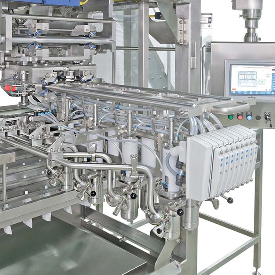 - Moving filling heads (with bag evacuation) for longer bag filling times of 0.5 to 2.5 seconds at 60 cycles / minute