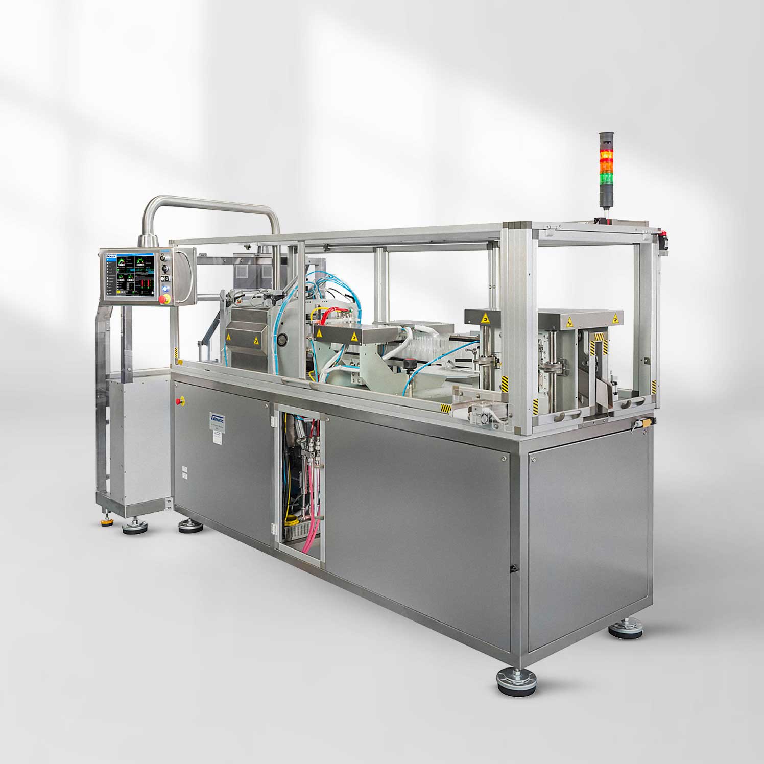 V75 is a cutting edge, new generation thermoforming-filling machine for the production of single-dose packaging in single or coupled plastics and paper, characterized by a high degree of versatility. The fields of application are the chemical, pharmaceutical, veterinary, cosmetic and food industries. Medium-sized lines can produce up to 18,000 vials per hour with a speed of 30 cycles/minute. It has become the BEST SELLER amongst Valmatic products, selling a great number of models in a short period of time after its presentation at Interpack 2017, in Germany. V 75 meets the needs of customers looking for a versatile FFS Line that can produce different formats for different industries at a high rate.